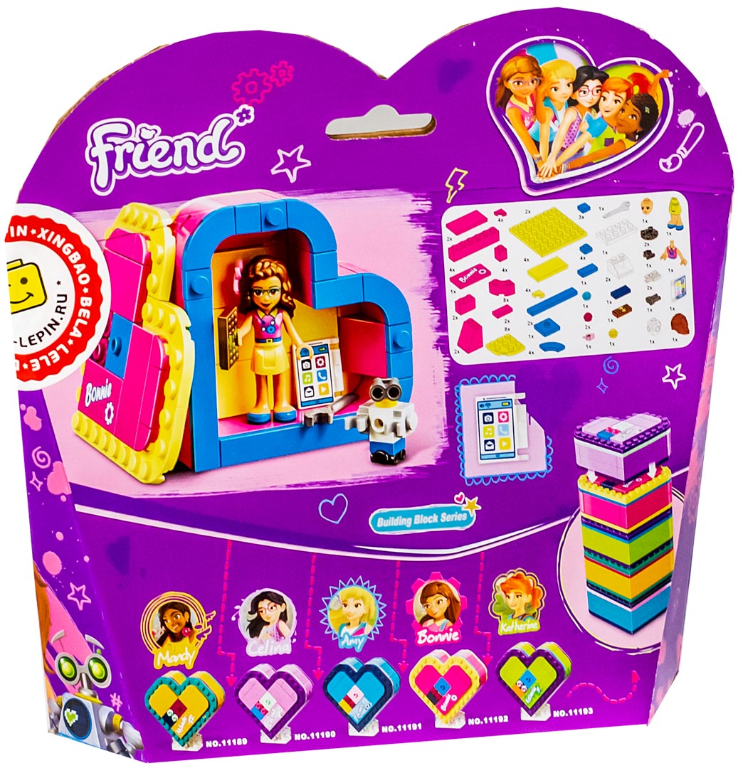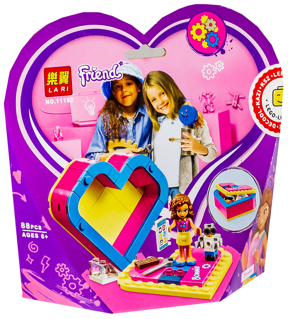 Конструктор «Шкатулка — сердечко Оливии» от Lari (Bela) — является высококачественным ом популярного конструктора Френдс 41357 «Olivia’s Heart Box». Собирая данный набор, ребенок может моделировать разнообразные игровые ситуации и погрузиться в мир серии Friends. Все любимые вещи изобретательницы Оливии в одной шкатулке: планшет, разводной ключ и робот — помощник Зобо. Положи шкатулку горизонтально и организуй лабораторию для новых исследований и открытий. Создайте свою коллекцию Friends с помощью нашего интернет-магазина. Собранная вами коллекция плюс немного фантазии — еще больше сценариев и сюжетов для игры.