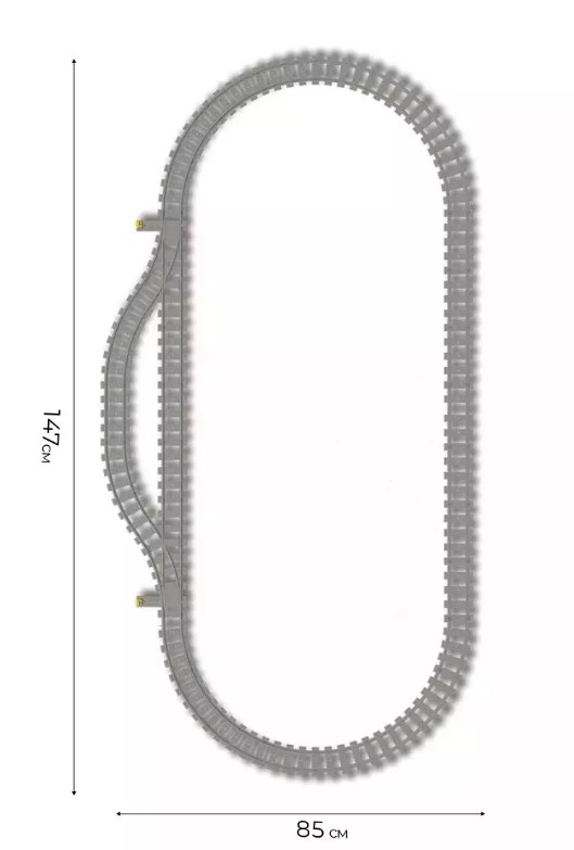 · Рельсовый путь: 8 прямых + 20 закруглённых рельсов + 2 стрелки