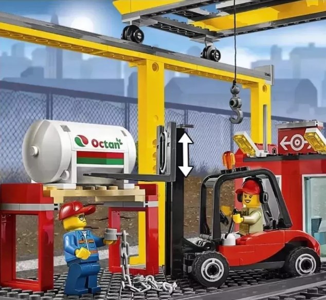 · Минифигурки: 4 фигурки (машинисты, водители, погрузчики)