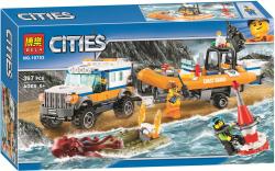 Конструктор Белла из серии Сити содержит 367 деталей, полностью совместимых с лего. С помощью этого набора вы соберете большое транспортное средство береговой охраны, включающее в себя внедорожник на больших колесах. Обеспечивающих хорошую проходимость в труднодоступных местах, прицеп для перевозки лодки. Ярко-оранжевая спасательная лодка оснащена мигалкой, панелью управления, спасательными кругами, двумя винтовыми моторами. На этот раз в беду попал драйвер, его надувная лодка была атакована осьминогом. В набор включены 3 минифигурки и фигурка осьминога. Спасатели, вперед!