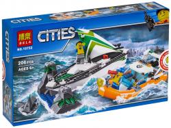 Набор включает в себя минифигурки работника спасательной службы и утопающего, а также крупную акулу с подвижной челюстью.
