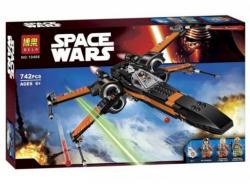 но прочный нос, под которым скрывается откидная стойка шасси. В центральной части истребителя располагается кабина пилота, окружённая прозрачным ветровым стеклом с чёткими линиями и острыми углами. В ней есть пространство только для одного пилота, занимающего место перед штурвалом и мониторами. Роль второго пилота играет астромеханический дроид BB-8, помещённый в специальную нишу. Во время патрулирования территорий крылья попарно прилегают друг к другу, а во время атаки разделяются, образуя узнаваемую Х-образную форму. Это достигается благодаря специальному вращающемуся рычагу и двум распоркам, установленным в хвостовой части корабля. Кроме того крылья являются неотъемлемой частью ходовой и боевой систем. На их основаниях закреплены четыре двигателя, а на концах - четыре лазерных пушки. Дополнительным вооружением служат две пусковые установки, размещённые под кабиной пилота. В наборе 4 минифигурки.