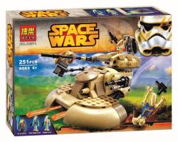 Бронированный штурмовой танк AAT – это основная боевая единица, используемая Торговой Федерацией для уничтожения вражеской пехоты. Lepin.by. Несмотря на свой небольшой корпус, танк имеет надёжную броню, способную выдержать прицельный огонь. Центральный люк, открывающий доступ к приборной панели и рычагам управления, защищён круглым герметичным щитом повышенной прочности. Внутри AAT могут одновременно находиться несколько боевых дроидов. Также в наборе 3 минифигурки с оружием: Джа-Джа Бинкс, боевой дроид и дроид-пилот.