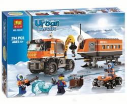 Реплика : 60035. Из конструктора получаются грузовик с автокраном, модуль-прицеп, в котором находится научно-исследовательская лаборатория, и небольшой квадроцикл. Lepin.by. Вся техника оранжевого цвета. Квадроцикл рассчитан на одну минифигурку. Самое крутое, что есть в этом квадроцикле – это буксировочная цепь. С ее помощью его можно прицепить к прицепу с лабораторией и передвигаться в связке.