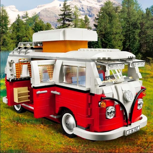 Снаружи спереди мы видим трехстороннее разделение цветов V-образной формы, выполненное с потрясающей детализацией, среди особенностей также округлая крыша и оконные рамы, открывающееся лобовое стекло сафари с перегородкой, открывающиеся двери, узнаваемая поднимающаяся крыша с тканевыми занавесками, багажник на крыше, задние воздухозаборники и многое другое. Lepin.by. Многоместное сиденье в кабине водителя, круглый спидометр – схожесть с оригиналом поражает с первых секунд. При этом авторские нововведения а конструктора в виде складывающегося обеденного стола, уборной с зеркалом и прочего добавляют авто даже больше шарма.