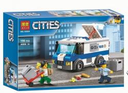 Инкассаторский грузовик настоящий лакомый кусок для воришек. Lepin.by. Несмотря на современную защиту кузова, в него пытались проникнуть многие злодеи. На это раз воришка с помощью лома проник внутрь кабины и пытается с помощью тележки сгрузить сейф. Размер инкассаторской машины 7х12х5 см. Lepin.by