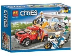 Совершив ограбление банка, воришки решили утащить сейф на буксировщике. Lepin.by. Но в дело вступила полиция. Полицейский на мотоцикле стремится помешать грабителям увезти сейф. Помоги полицейскому задержать воришек!
