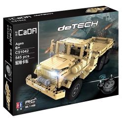 Детский конструктор CaDa Technic С51042W представляет собой набор для постройки военного грузовика на радиоуправлении и содержит 545 деталей! Помимо деталей корпуса, в комплект входят колеса, электродвигатель, плата управления, аккумулятор с зарядным устройством и пульт! Детали в наборе отлично подогнаны друг к другу, поэтому сборка не вызовет трудностей, а собранная машинка не развалится во время игры. У собранной модели очень много подвижных деталей: открываются двери, капот и борт кузова!