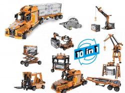 Детали в наборе отлично подогнаны друг к другу, поэтому сборка не вызовет трудностей, а собранные модели не развалится во время игры. Основной моделью в конструкторе CaDa Technic С71002 является тягач с прицепом и контейнером на нем. На кабине он имеет акустический сенсор. Достаточно хлопнуть в ладоши и тягач поедет вперед. Повторный хлопок остановит машину. Еще одна такая же сенсорная модель - контейнеровоз со стрелой. При помощи сенсора управляется движение крана по поверхности, а подъем и длина вылета стрелы регулируется в ручную. Вилочный погрузчик работает по аналогичному принципу. Все остальные варианты сборки не менее увлекательны и интересны, в них сенсорное управление не задействовано, все регулировки выполняются вручную.