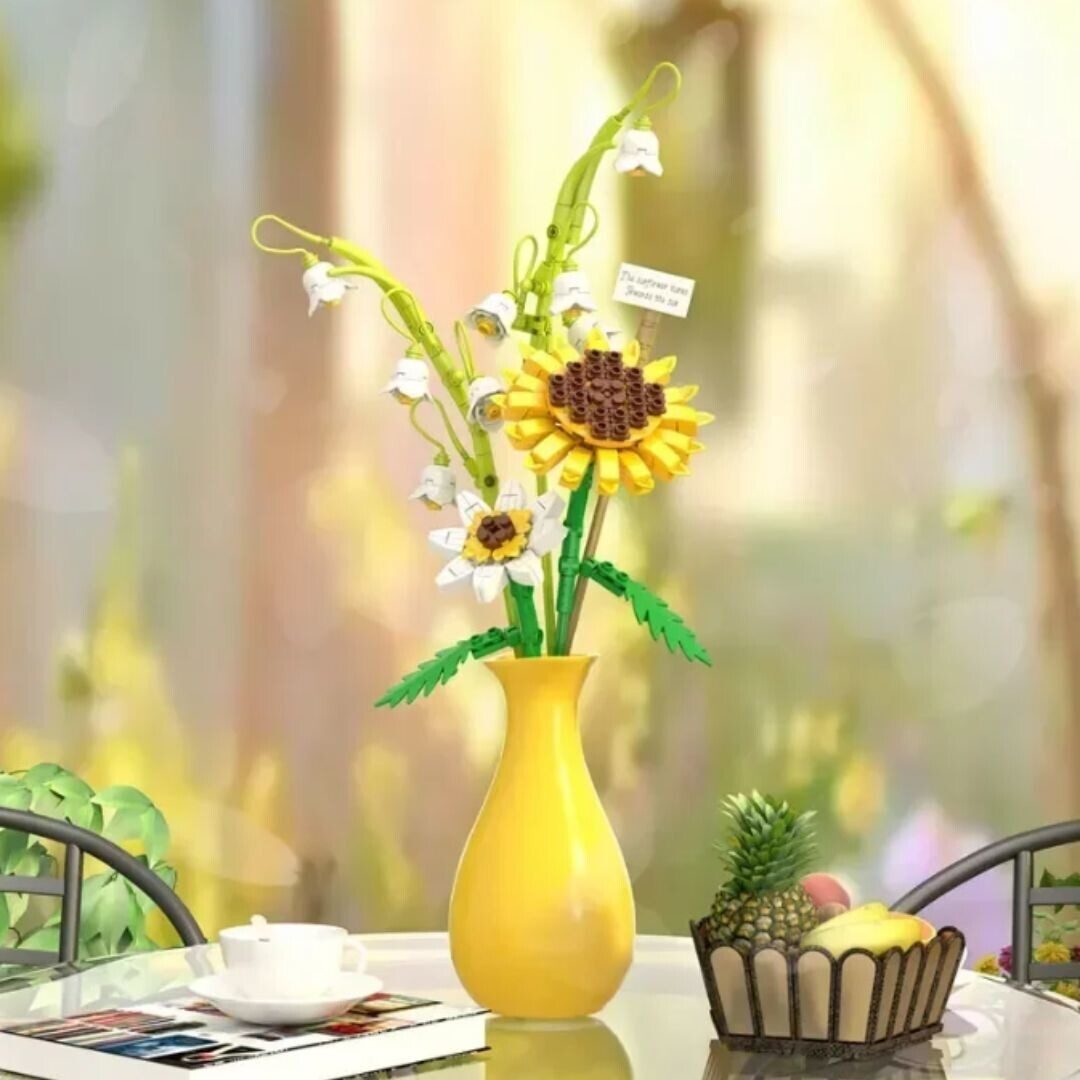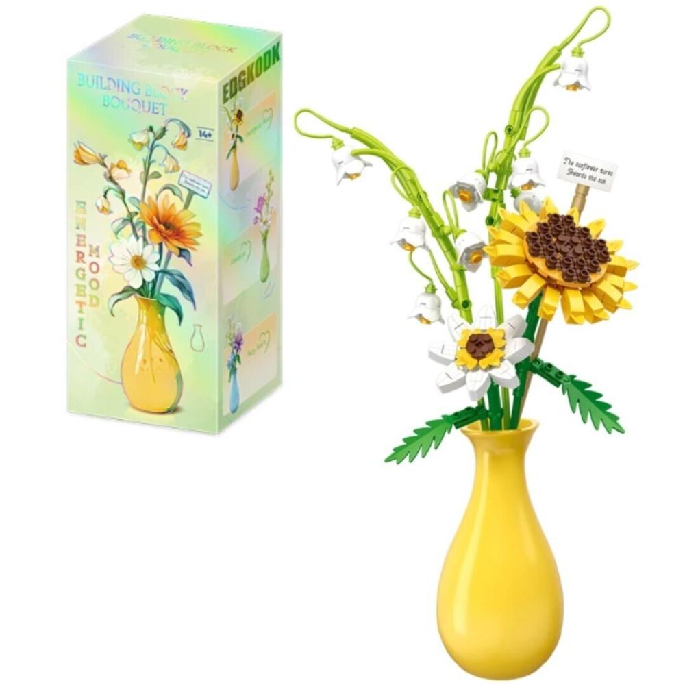 Конструктор Zhe Gao 622005 - Букет с подсолнухом в наборе с керамической вазой