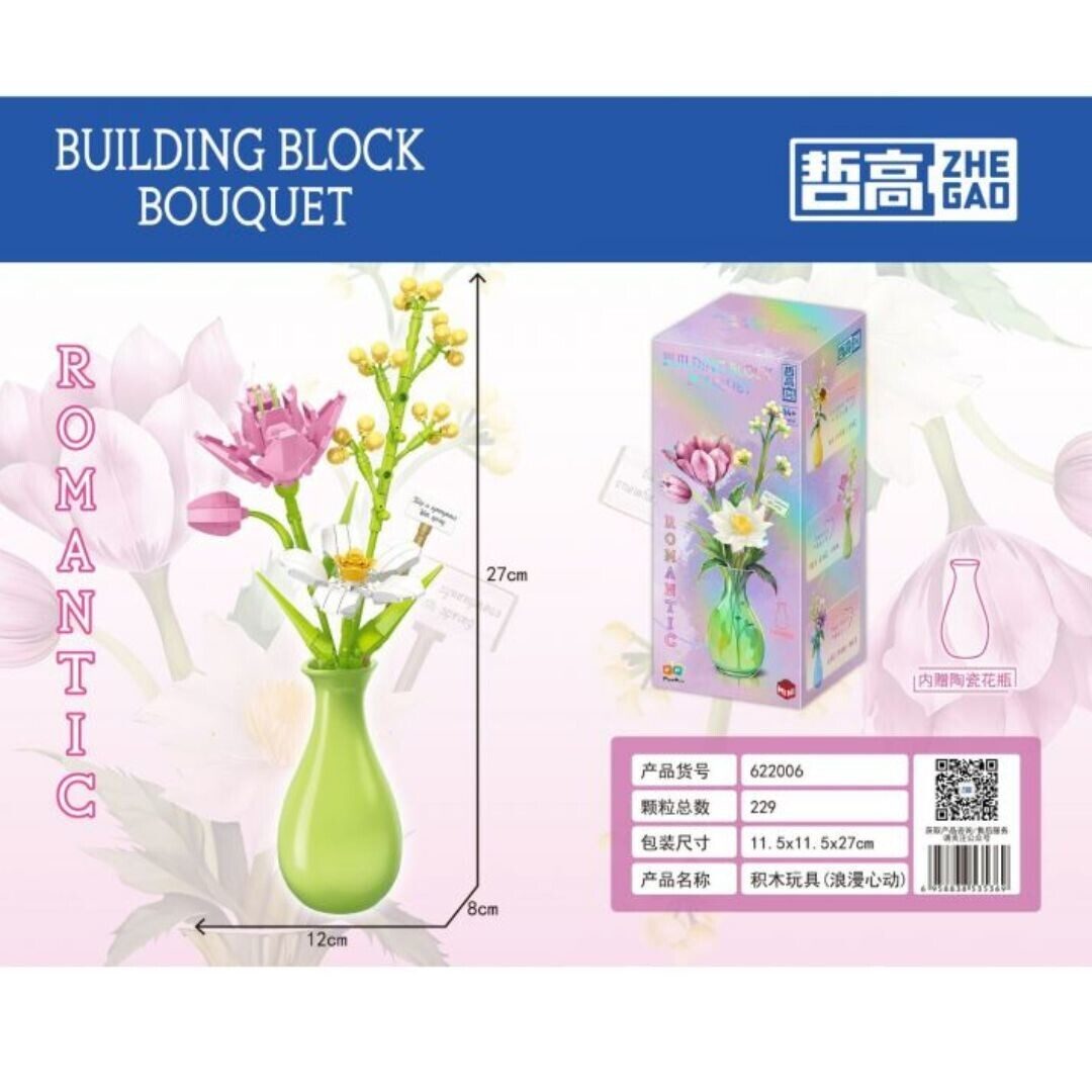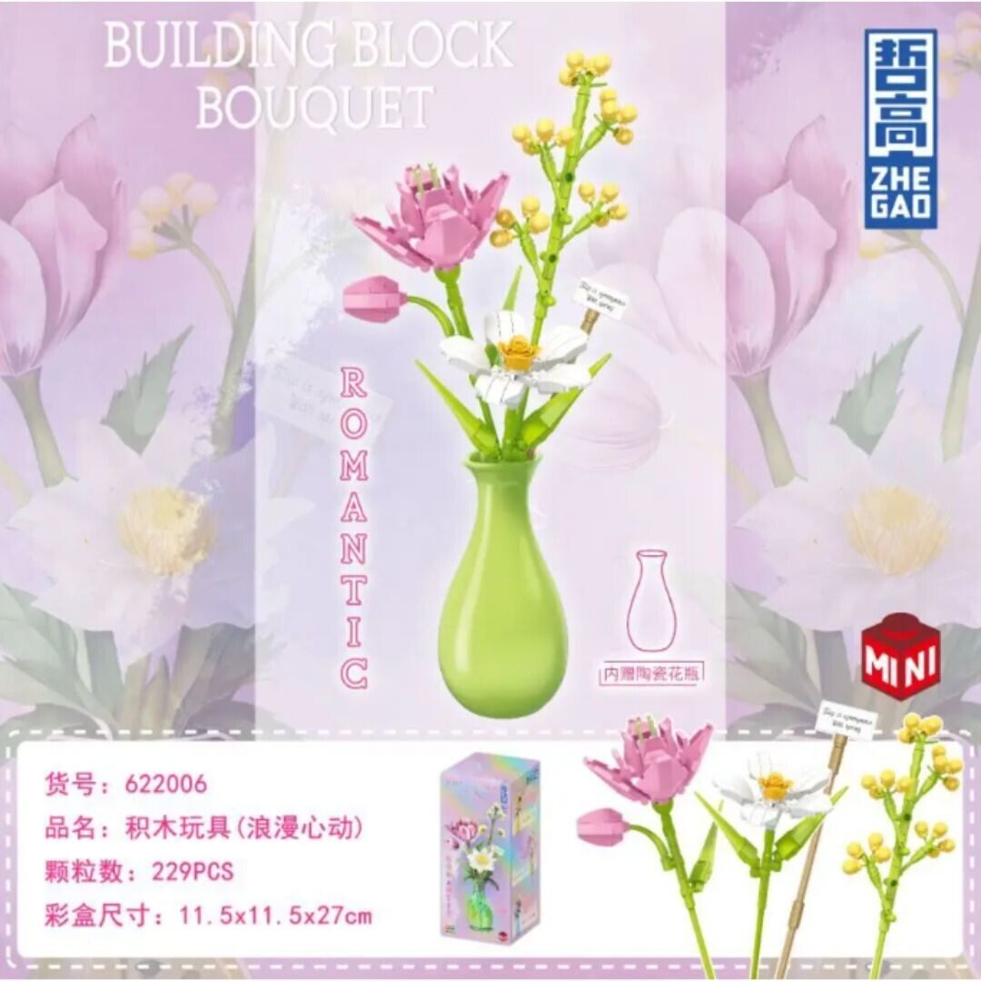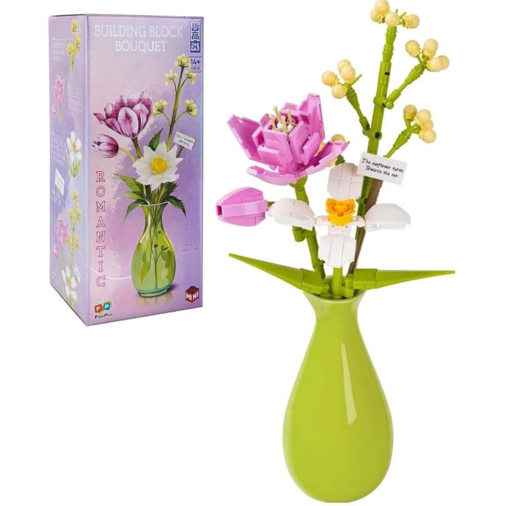 Конструктор Zhe Gao 622005 - Букет с подсолнухом в наборе с керамической вазой